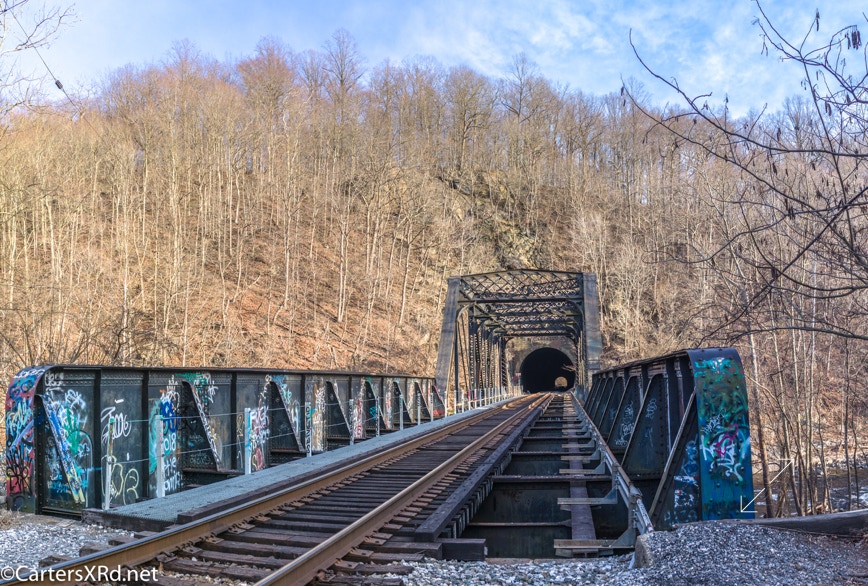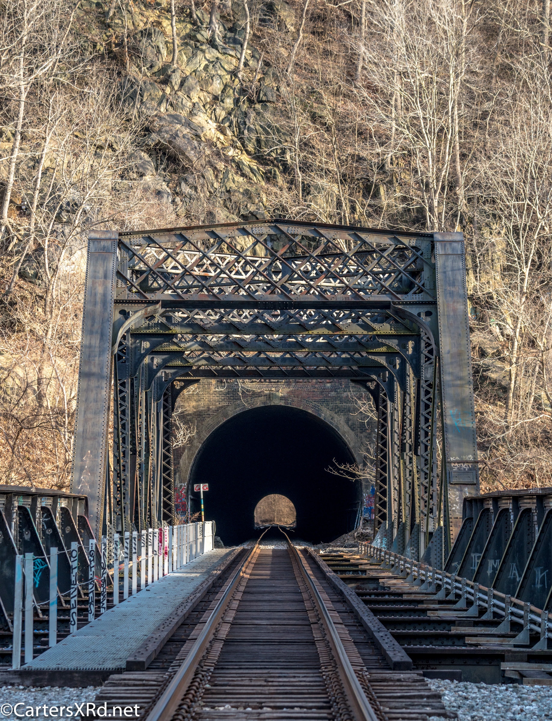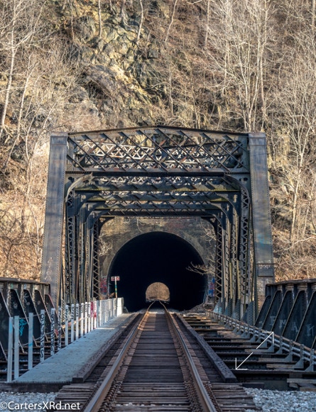 Just up the Patapsco River from Relay/St Denis and the Thomas Viaduct are the Ilchester bridge and tunnel. The bridge and tunnel were built in 1902-03. A previous bridge there (Patterson Viaduct) was destroyed by floods in 1866 along with many of the mills along that part of the Paptapsco. The track is part of the original B&O Line from between Relay and Ellicott City. I took these photos in December 2019.