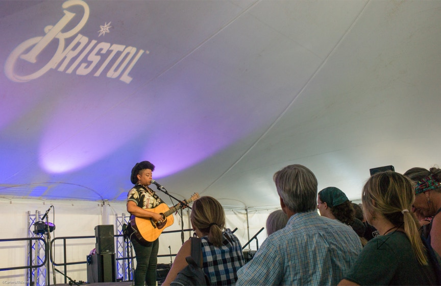 Tennessee born, Amythyst Kiah works out of Johnson City these days. Her very strong stage presence and songs bring Tracey Chapman to mind for me. Her song “Black Myself,” performed by Our Native Daughters (Kiah, Rhiannon Giddens, Leyla McCalla, and Allison Russell) won 2019 Song of the Year at the Folk Alliance International Conference and nominated for a Grammy for Best American Roots Song. These photos are from September 22, day 3 of the Bristol Rhythm & Roots Reunion.