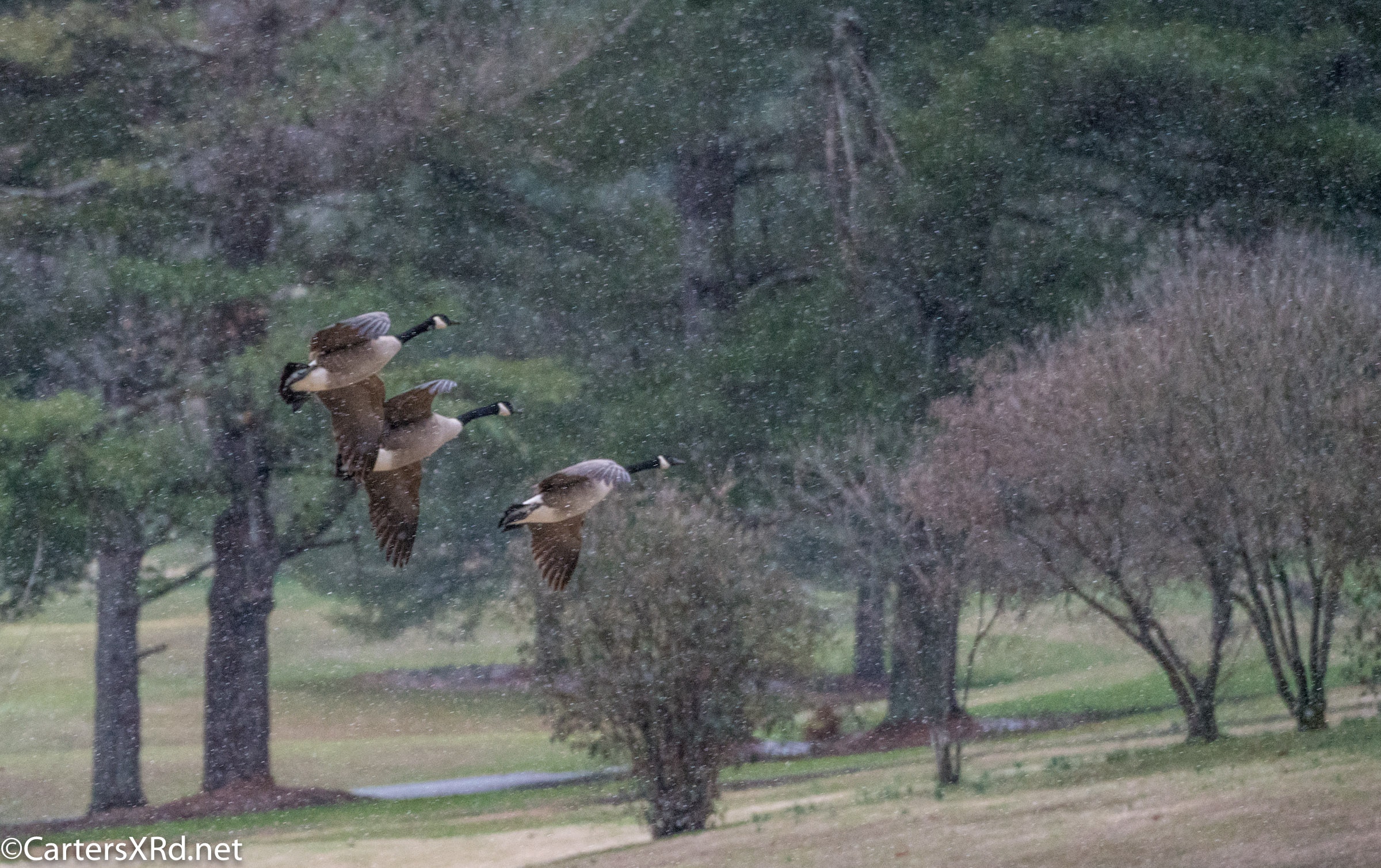 Canada Geese landing on golf course, Steele Creek Park, Bristol TN
