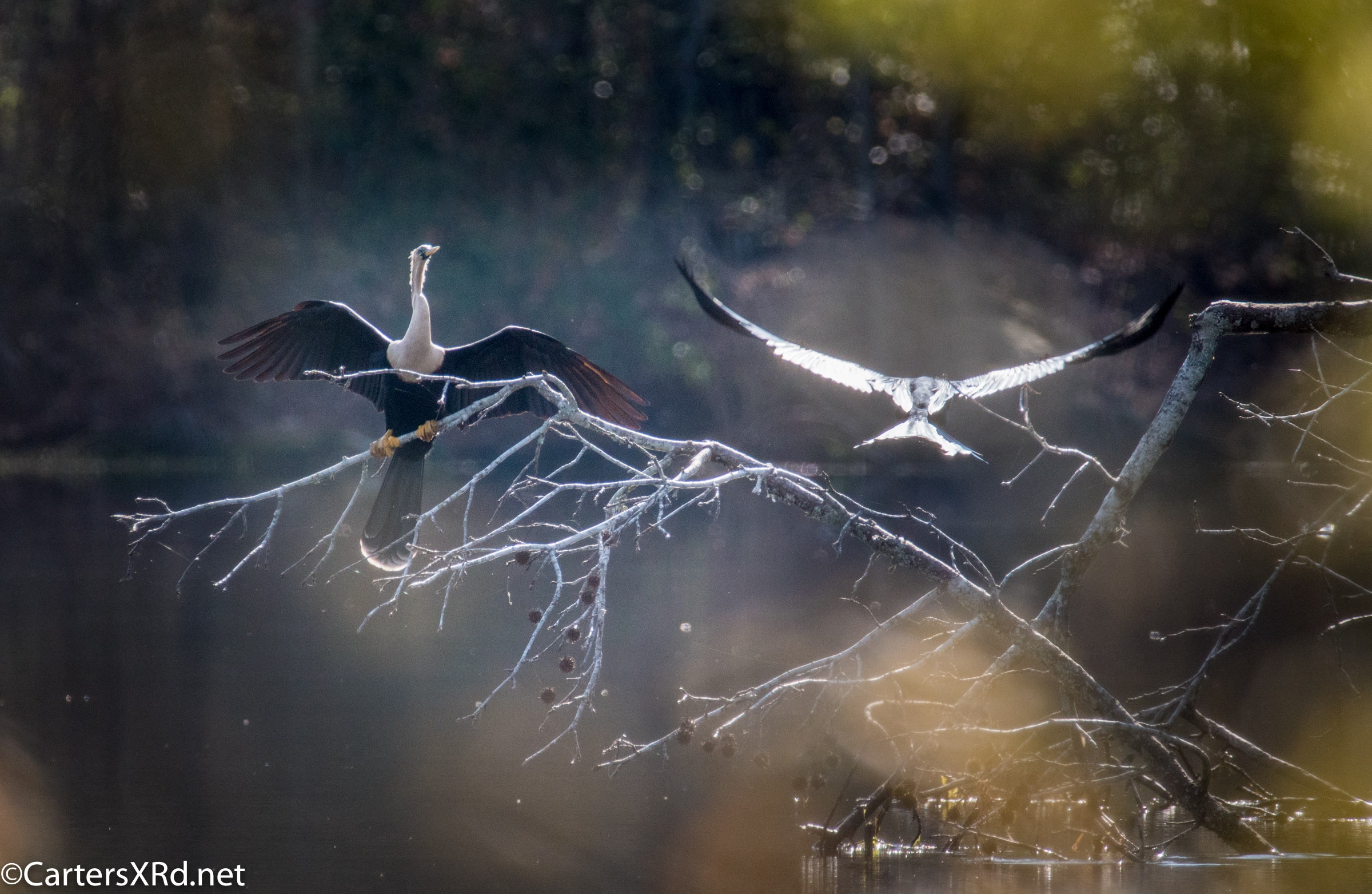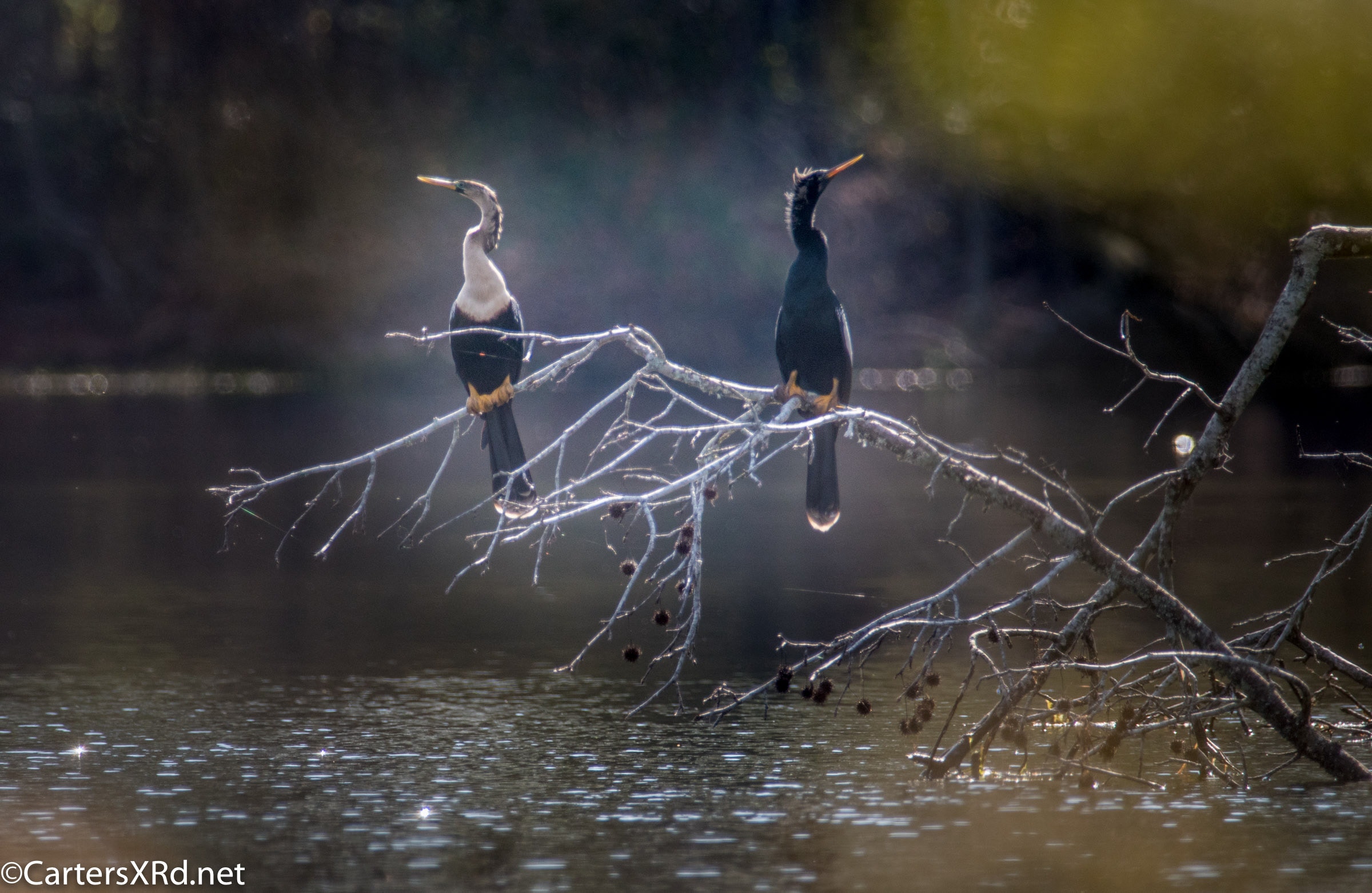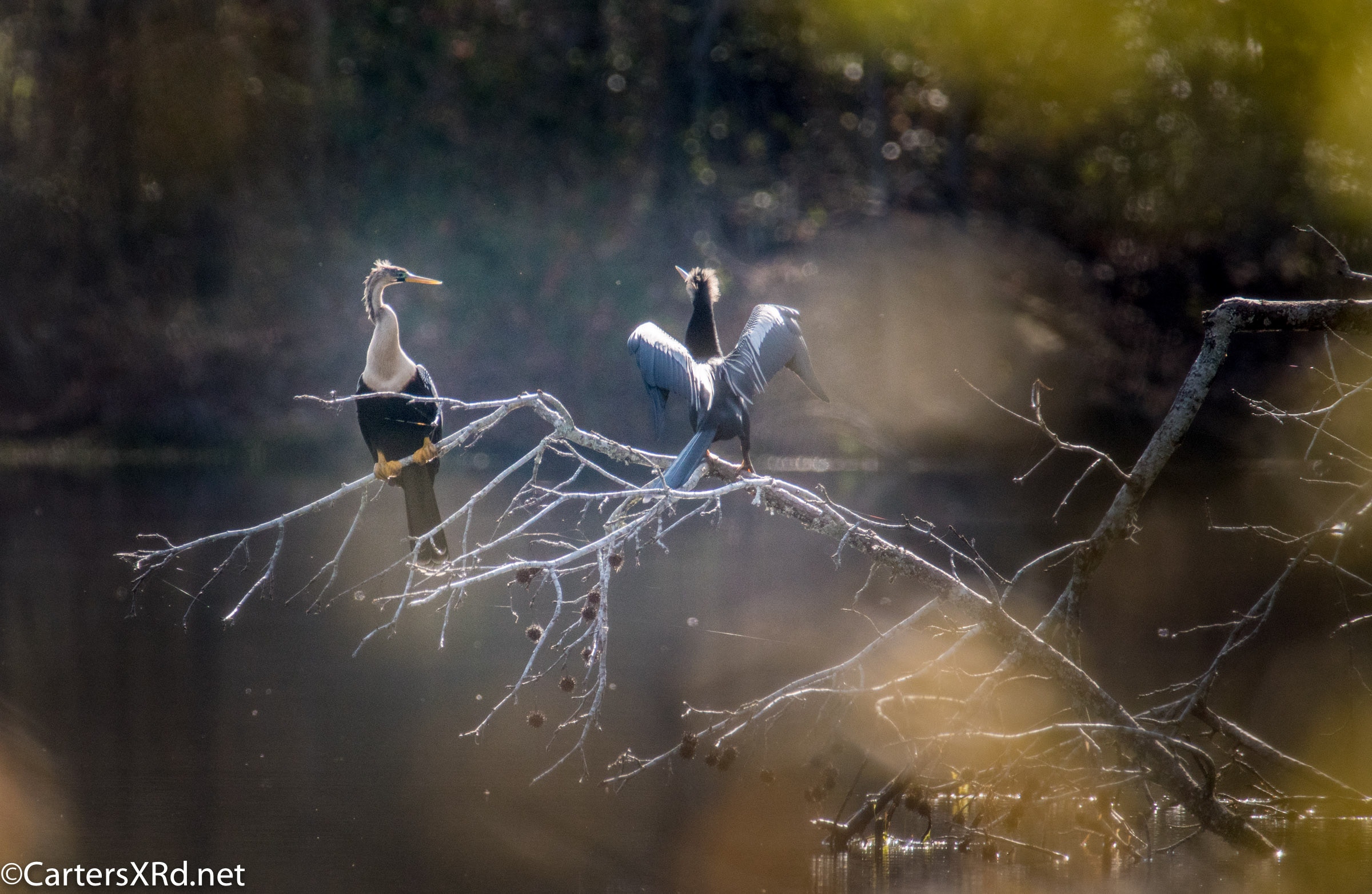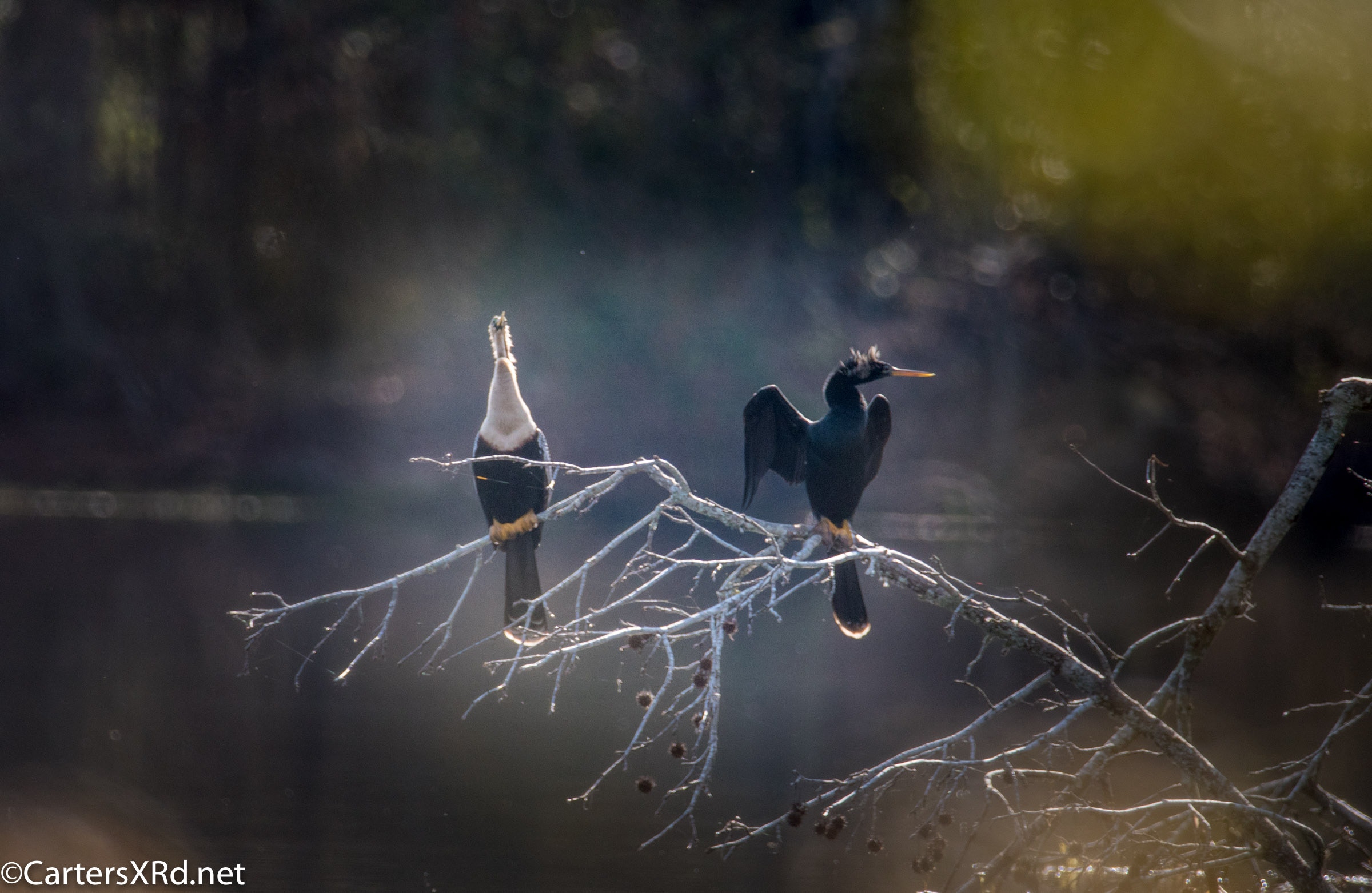 Ah springtime! When hopes and goals soar. When the heart turns to romance. These anhingas in an old Beaufort County sandpit were thinking about preservation of the species. The persuasive abilities of the male on the right are unverified as the female did not immediately follow him after his display.