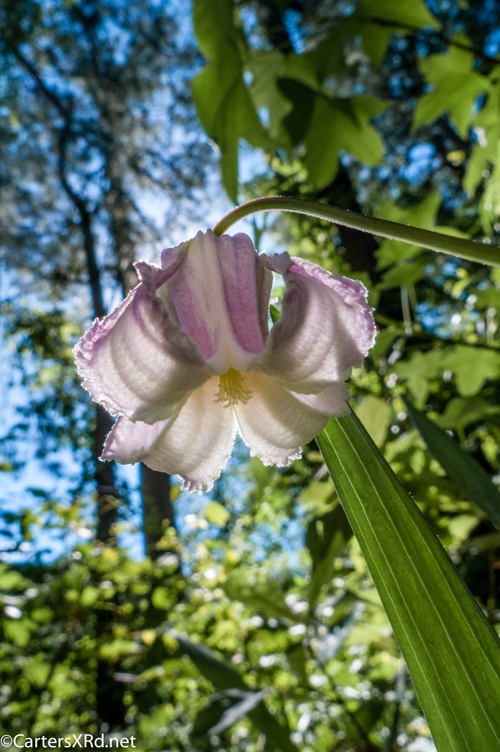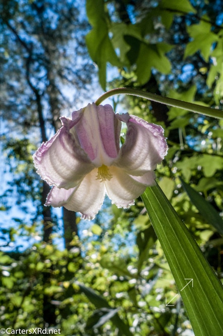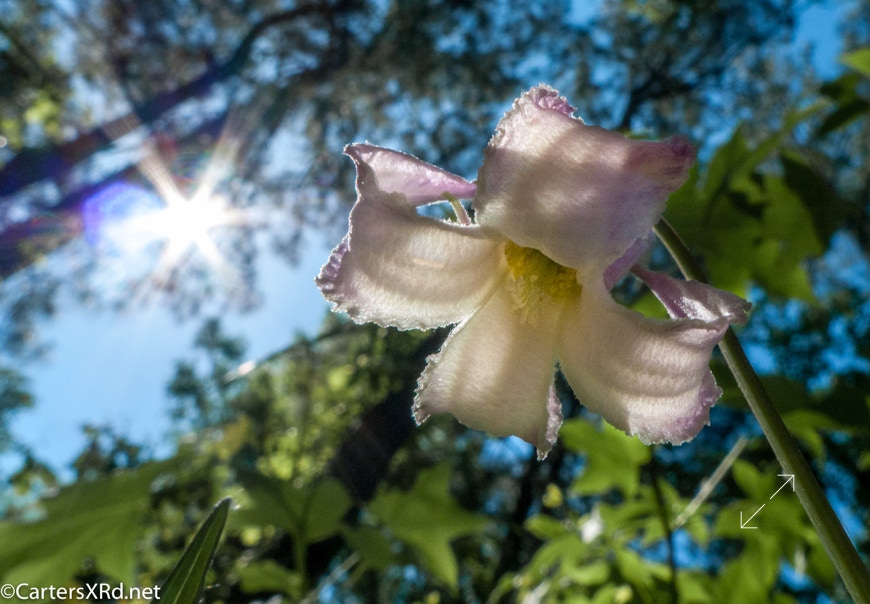 This bell-shaped beauties grow on a perennial vine and are in the Clematis family. They are in the woods near our house, and I photographed this bloom as it eclipsed the sun one morning.