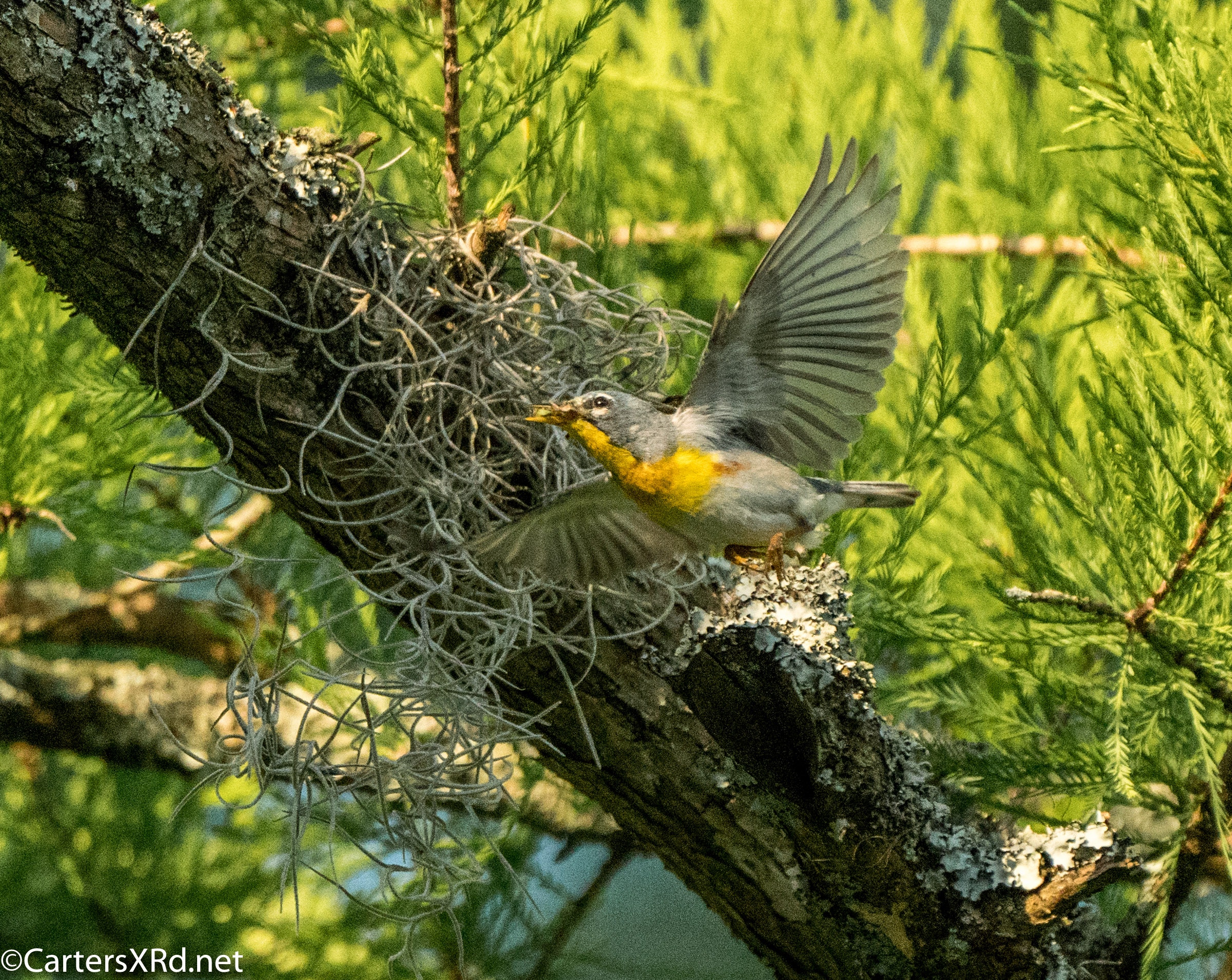 We watched a parula nest in the edge of the swamp for several weeks. Out excitement about their heavy feeding excited us until our hopes were dashed by the emergence of a fledgling cowbird.. But, we at least got to see the parulas for a while. Week 21 was May 17-23.