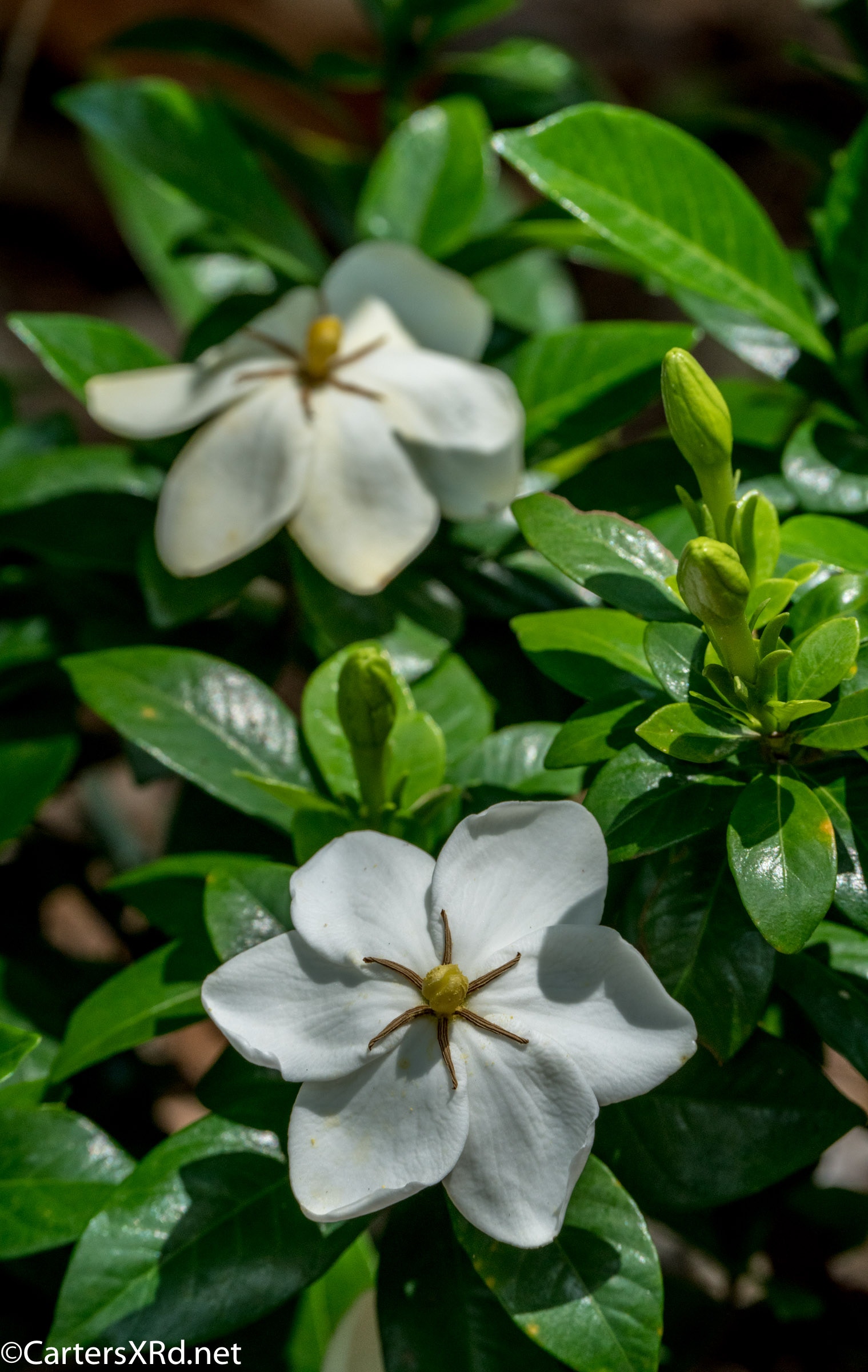 From our yard in Little Washington, one of the world great smells - gardenia. This is one of the simpler forms of the old standard.