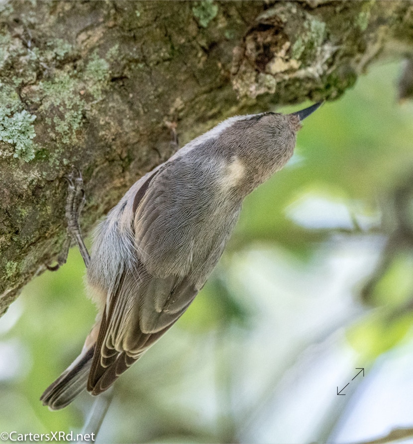 Stopping at Havens Gardens photograph an osprey one day in June, I took shade under a live oak. I began to hear a squeaking in the tree over me. I soon started to see there a flock of brown-headed nuthatches probing all the nooks and crannies of the old craggy oak. I took all these photos June 29.