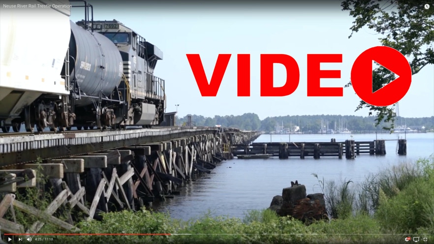 On September 3, Norfolk Southern P97 departs New Bern for its Chocowinity home base. This crossing video includes a full operation cycle of the draw over the Neuse River.