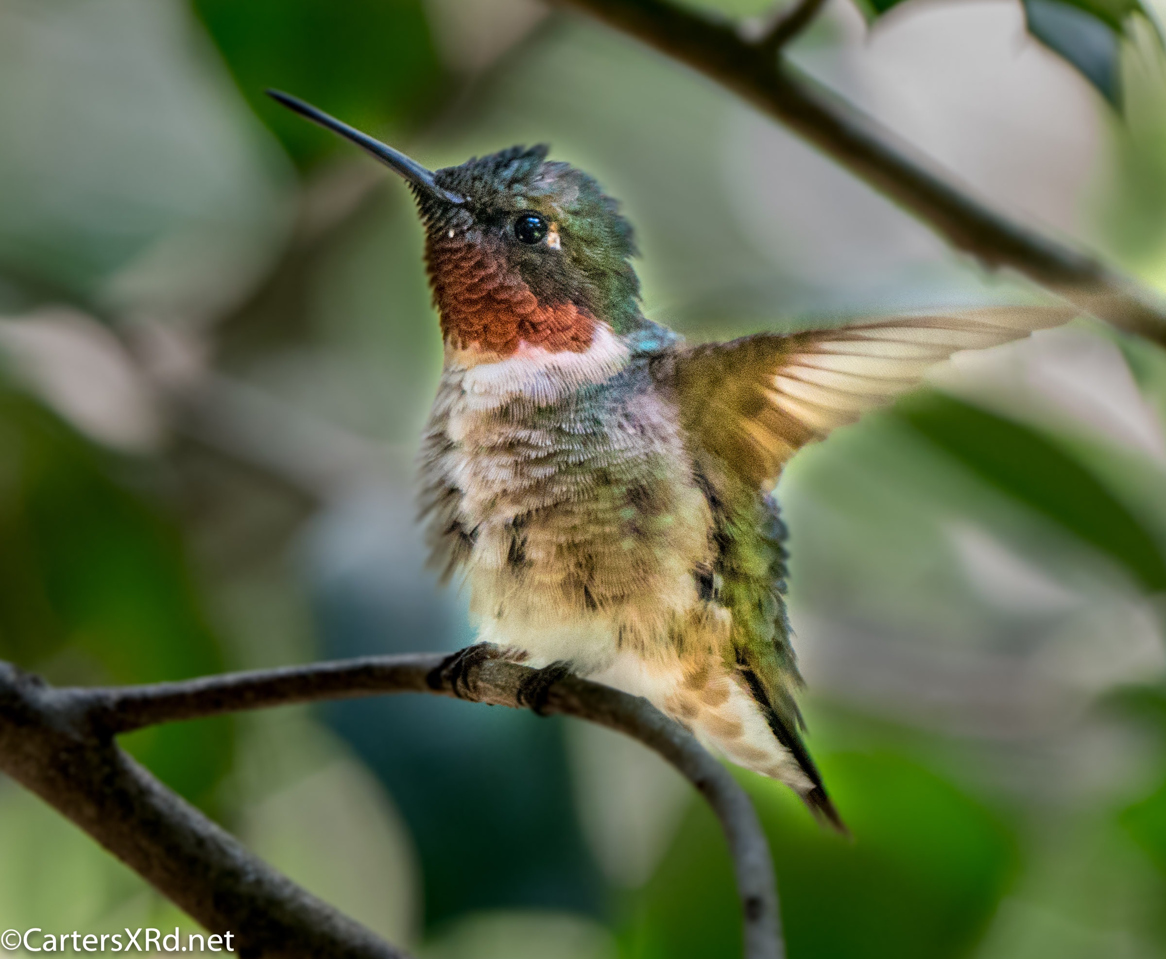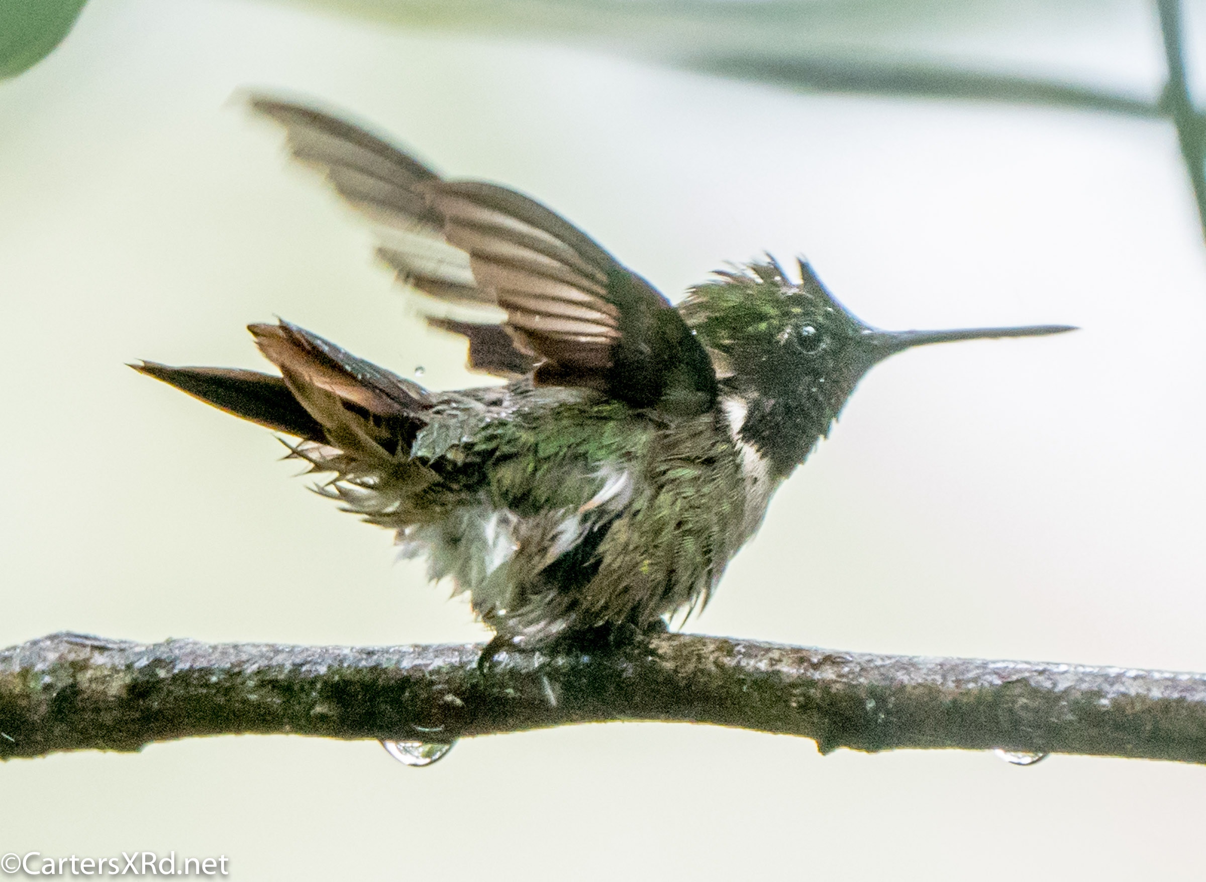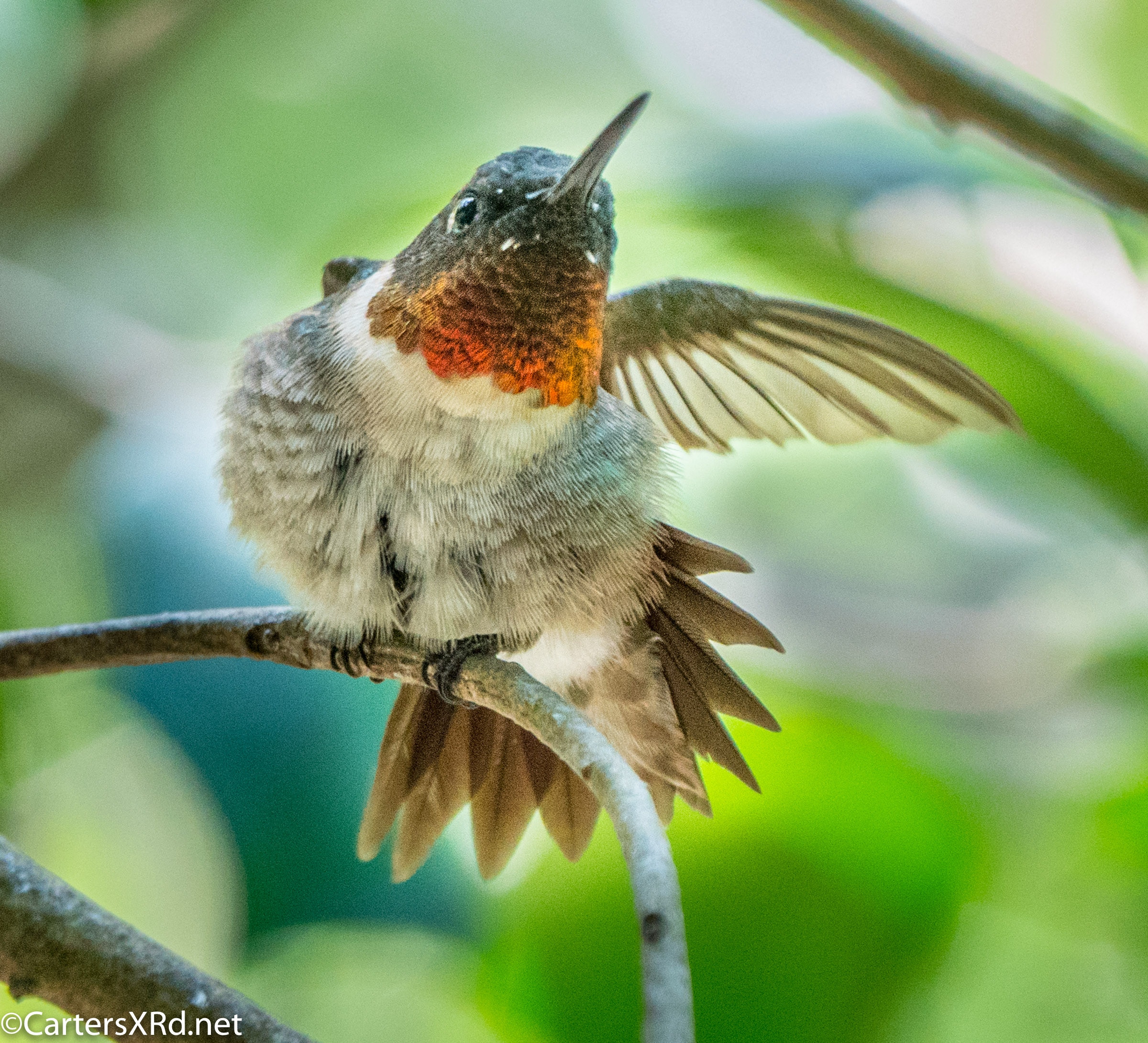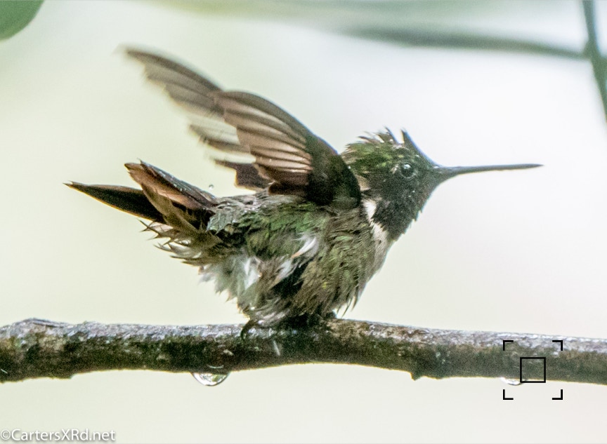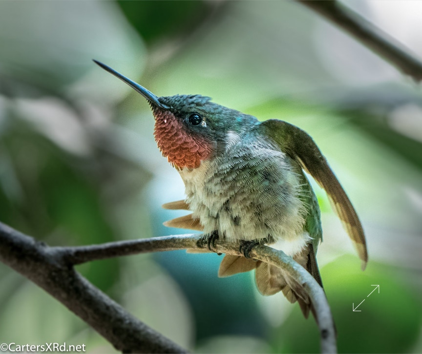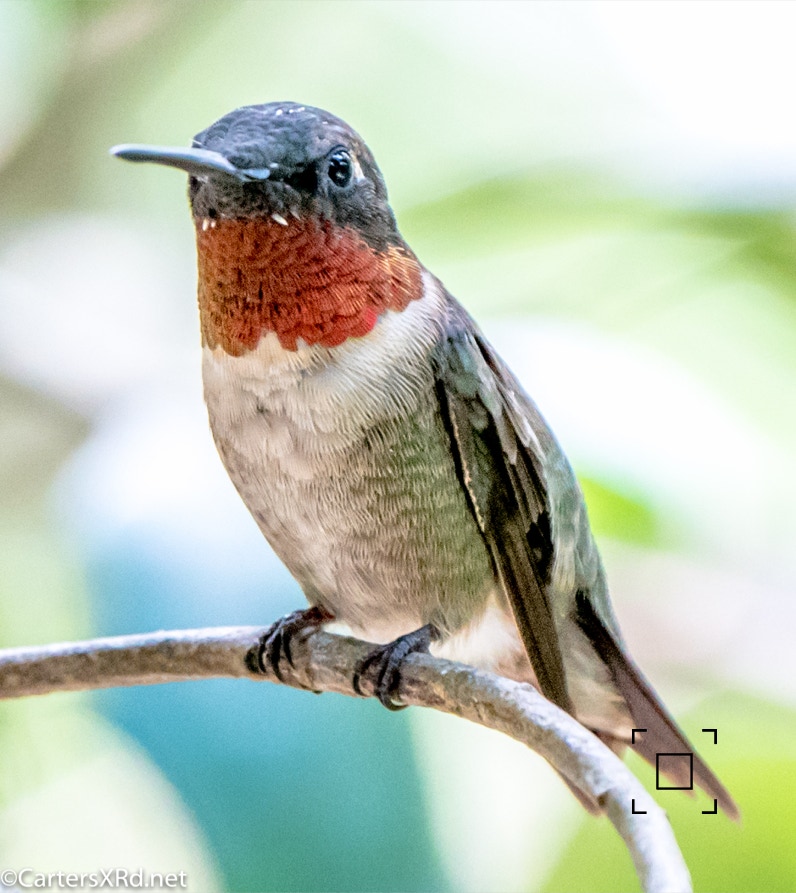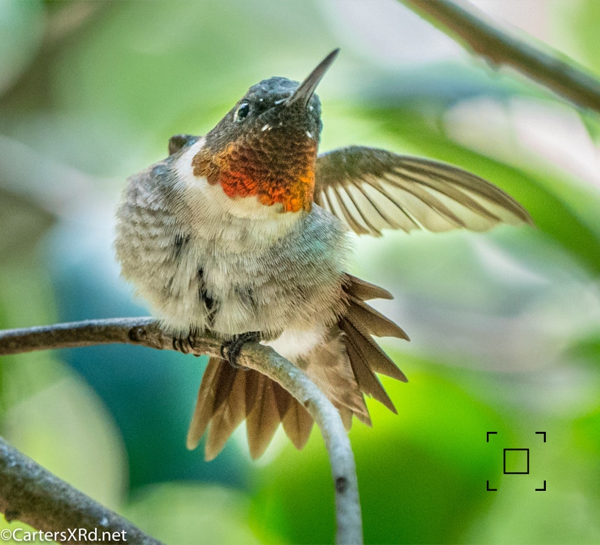 The ruby-throated hummingbirds were feeling especially feisty in mid-August. These photos were taken near our front deck as they tried to stake out a feeder that held more food than both of them could eat. Views include preening, hovering, rain bathing, and display. Week 33 was August 9-15.