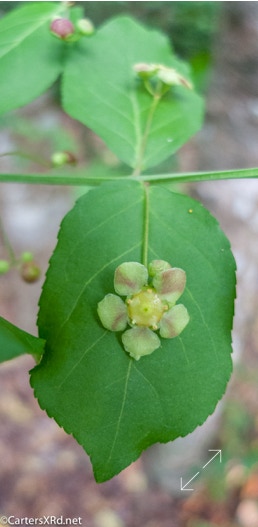 Small as a fingernail, hearts-a-busting has one of the most subtle flowers around, but it sure makes up for it when it fruits out in the fall. These are from our yard.