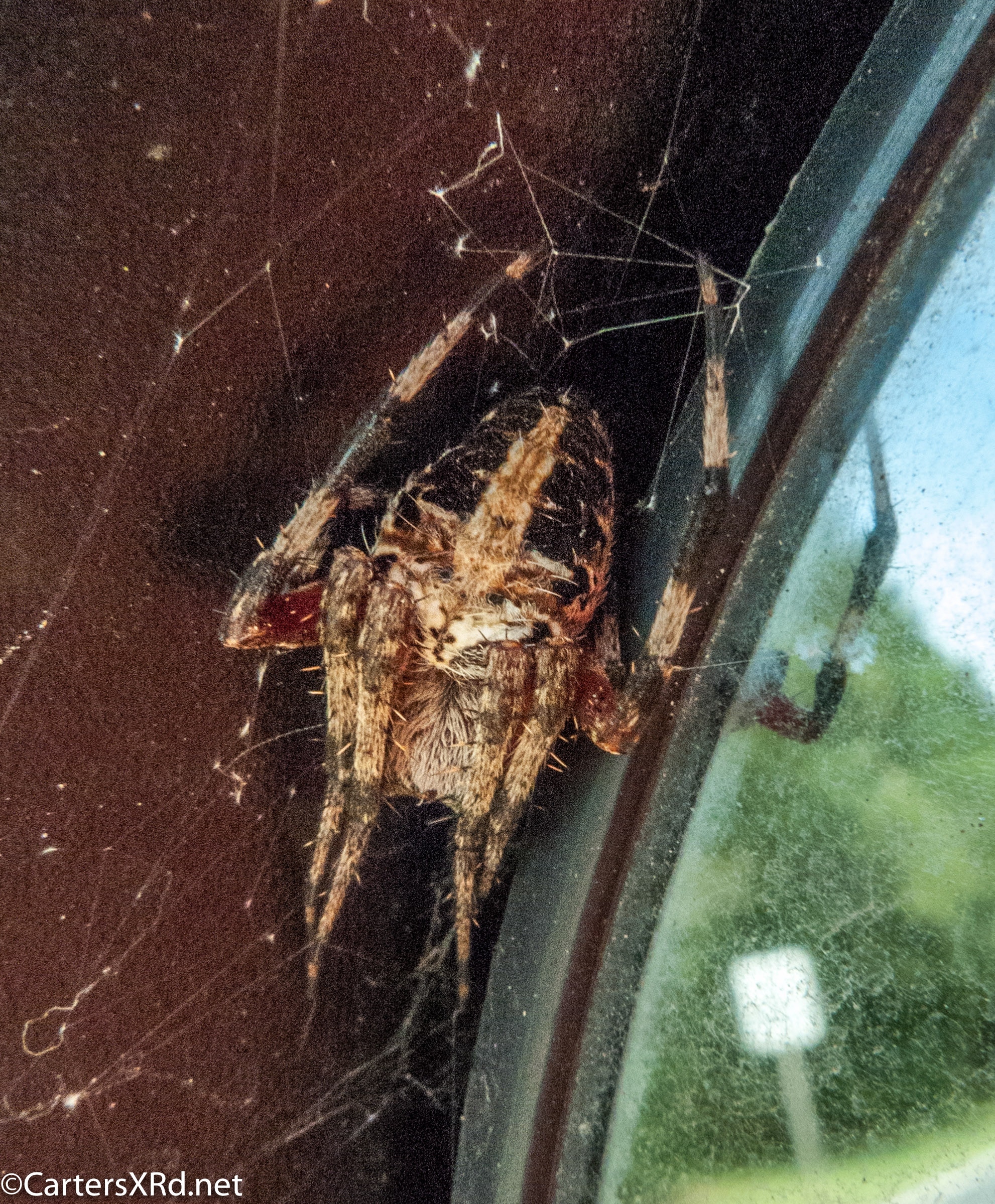 Spider in my rearview mirror