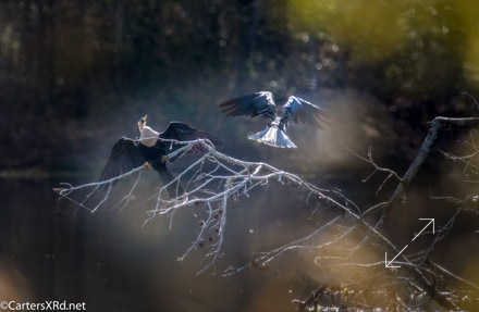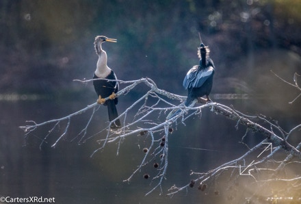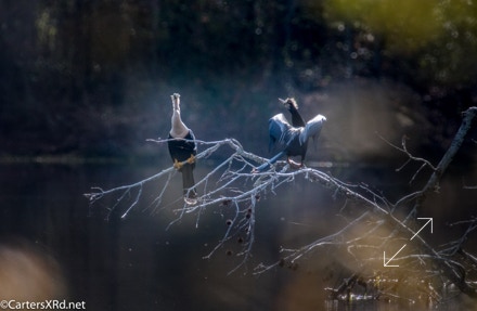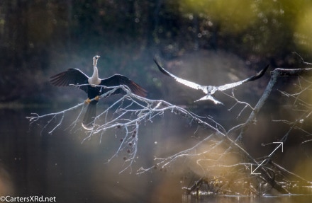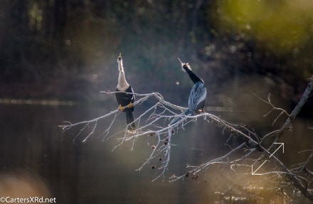 Ah springtime! When hopes and goals soar. When the heart turns to romance. These anhingas in an old Beaufort County sandpit were thinking about preservation of the species. The persuasive abilities of the male on the right are unverified as the female did not immediately follow him after his display.