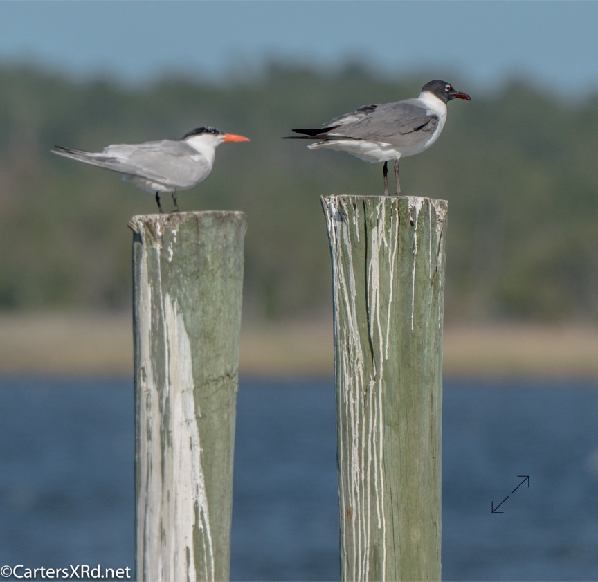 Royal/Caspian (?) Tern, Laughing Gull, South Creek NC