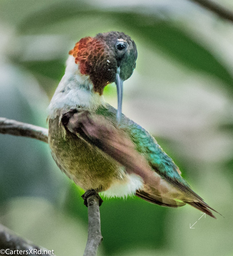 The ruby-throated hummingbirds were feeling especially feisty in mid-August. These photos were taken near our front deck as they tried to stake out a feeder that held more food than both of them could eat. Views include preening, hovering, rain bathing, and display. Week 33 was August 9-15.
